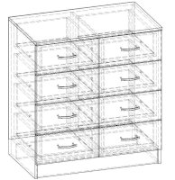 • Корпус, полки и фасады изготовлены из ЛДСП 16 мм с кромкой ПВХ 0,4 мм.