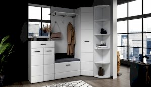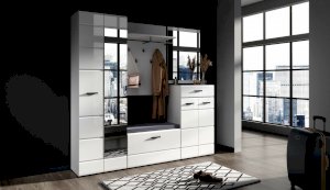 Прихожая Йорк выполнена в современном стиле – сочетает в себе функциональность и эффектный внешний вид: строгая горизонтальная фрезеровка фасадов, контрастные черного цвета ручки и задняя стенка из ХДФ. Глянцевые белые фасады High Gloss из МДФ и зеркала наполняют помещение светом, делают ее ярче и просторнее. Компактная и вместительная, с небольшой глубиной модулей, она поможет правильно организовать систему хранения даже в небольшом помещении.