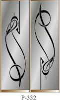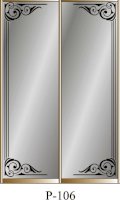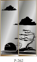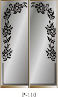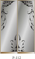 Данное изображение представлено в следующих цветах: корпус - Дуб Сонома, фасады - зеркало с пескоструйным рисунком, рамка двери и треки - Серебро матовое.
