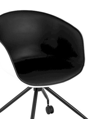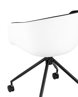 Лаконичное компьютерное кресло Libra в современном стиле. Эта уникальная модель будет прекрасно смотреться как в высокотехнологичной обстановке хай-тек, так и в помещении, оформленном в скандинавском стиле. Белая спинка изготовлена из прочного PP-пластика, внутренняя обивка и подушка на сиденье – из экокожи в черном цвете. Крестовина выполнена из металла, окрашенного порошковой краской в черном оттенке. Кресло оборудовано колесиками для более удобного пользования. Высота сиденья не регулируется и составляет 48,5 см. Максимальная нагрузка до 150 кг.