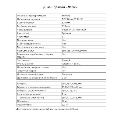 | Длина спального места, см | 190 |