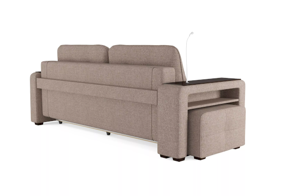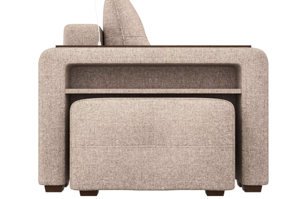 Добавить контрастных деталей в интерьер поможет пуф, интегрированный в подлокотник. Этот вариант для современных людей, которые ценят комфорт и удобство отдыха. Мягкое сиденье с легкостью трансформируется в просторное спальное место, на котором смогут утроиться ваши гости. Стильный и уютный, он станет отличным решением, если вы ищите не только красоту, но и комфорт.