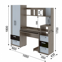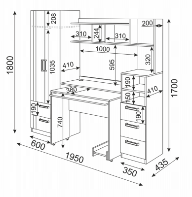 • Шкаф снабжен торцевым вешалом для одежды на плечиках и полку над ним + 2 выдвижных ящика.