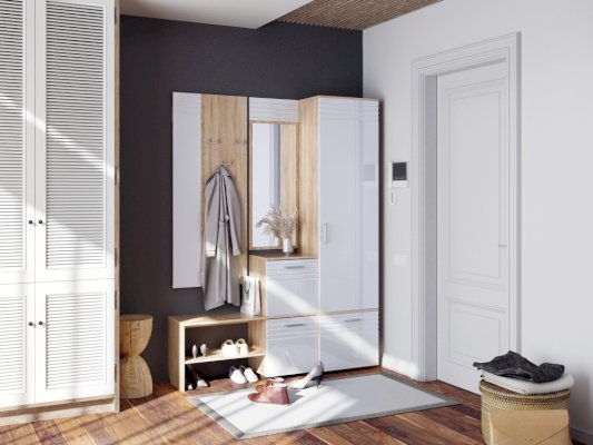 Тумба обеспечит порядок в прихожей и сохранность Вашей обуви. Конструкция тумбы состоит из сиденья для комфортного переобувания и двух закрытых полок для невысокой обуви.