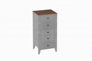 Комод с 5 ящиками Валенсия выполнен из ЛДСП в комбинации Дуб натуральный светлый / Персидский жемчуг.