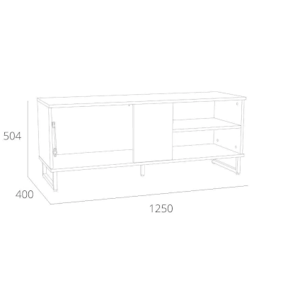 Тумба оснащена открытыми нишами и полкой, в которых можно удобно разместить видео- и аудиоаппаратуру или предметы интерьера.