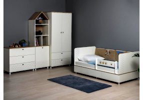 Односпальная кровать оснащена съёмным мягким элементом с карманами — можно легко снять для стирки. Съёмный бортик на кроватке. Оригинальная фотопечать. В основании кроватки размещены - три выкатных ящика.