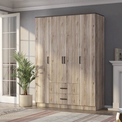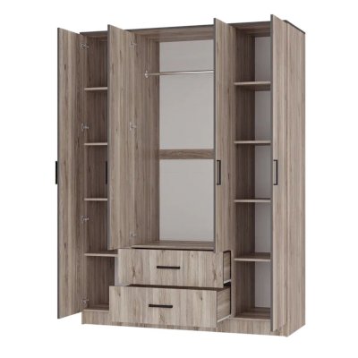 Четырехстворчатый шкаф "Титан" - это элегантное и функциональное решение в трендовом древесном декоре с текстурой дуба.