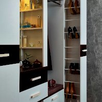 Высокая и узкая выдвижная обувница - уникальное предложение на рынке мебели. Узкая обувница поможет аккуратно расставить до 18 пар обуви, а также средства по уходу за ней. Шкаф выдвигается без усилий, благодаря выкатным роликам и шариковым направляющим полного выдвижения. Пространство внутри шкафа вентилируется с помощью небольших отверстий на крышке и дне выдвижной части шкафа. Предусмотрена право- и левосторонняя сборка модуля.