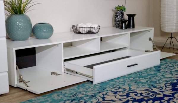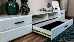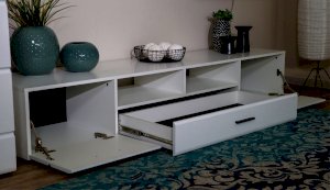 Модульная система Йорк позволяет подобрать тумбу для ТВ индивидуально, исходя из Ваших предпочтений, размеров телевизора и гостиной. Тумба оснащена всем необходимым для удобства использования, выдвижными ящиками на телескопических направляющих, открытыми и закрытыми полками для медиа техники, пультов и других необходимых вещей. Выполнена из экологически безопасных материалов.
