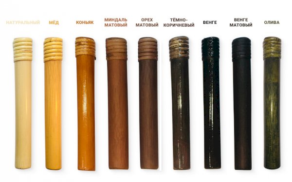 Цвета: натуральный, мед, коньяк, миндаль матовый, орех матовый, темно-коричневый, венге, венге матовый, олива, двухцветный