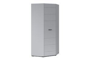 Угловой шкаф выполнен в современном стиле – сочетает в себе функциональность и эффектный внешний вид: строгая горизонтальная фрезеровка фасадов, ручки и задняя стенки контрастного черного цвета. Глянцевые белые фасады High Gloss из МДФ наполняют комнату светом, делают ее просторнее. Внутри предусмотрены секции для белья и отделение со штангой. Шкаф позволяет рационально использовать пространство и будет хорошо смотреться даже в небольшой комнате, служит связующим звеном для составления угловой системы хранения. Идеально компонуется со всеми модулями системы Йорк.