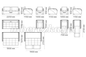 Размер дивана : 2250*1150*950 мм