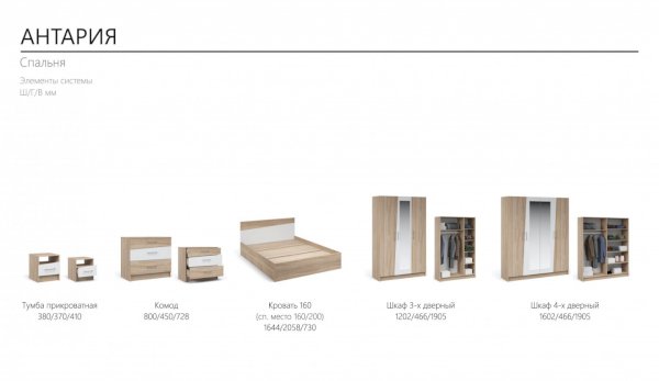 Модульная спальня Антария Дуб Сонома/Белый (Империал) - за 31 720 руб. в Химках. Купите на сайте himki.onlinemarketmebeli.ru или по телефону 8(800)505-30-63 уже сегодня! Уточнить наличие, комплектацию, актуальную цену можно бесплатно у менеджера ежедневно. Закажите Модульная спальня Антария Дуб Сонома/Белый (Империал) до конца акции! Доступна покупка в кредит, рассрочку. Доставим со склада или на заказ.