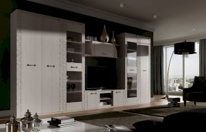 Гостиная «Элана» обязательно покорит любителей минимализма и сторонников практичности, ведь она может комплектоваться по Вашему желанию различными шкафами достаточной вместимости и полками, на которых удобно разместятся и важные мелочи, и элементы декора. Располагаться элементы гостиной «Элана» могут различным образом, что придаст помещению, в котором она будет находиться, неповторимый вид. Дополнительно к основным модулям гостиной «Элана» рекомендуется приобрести полку «Лаго», один из вариантов журнальных столиков, а также добавить романтики в обычный вечер с помощью специальной светодиодной подсветки, которая может быть расположена в стеклянных полках.
