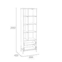Шкаф оснащен распашной дверкой, которая закрывается мягко и легко за счет механизма с доводчиком, двумя выдвижными ящиками с системой шариковых направляющих, при помощи которых ящики выдвигаются бесшумно, а также открытыми полками. Благодаря комбинации закрытых и открытых ниш можно удобно разместить все необходимые книги и предметы интерьера, они не будут разбросаны в хаотичном порядке, а оригинальные высокие опоры обеспечивают быстрый и комфортный доступ при уборке. Дополните шкаф тумбой из одноименной коллекции, чтобы оптимизировать место хранения и создать особо гармоничную атмосферу.