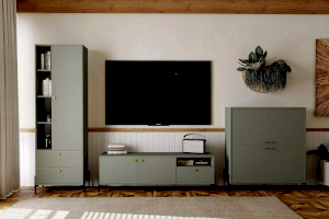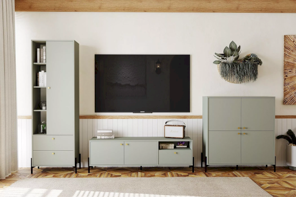 Шкаф из коллекции Нуар цвета Хаки подойдет для тех, кто ищет необычный современный дизайн. Это слияние двух стилей – строгая геометрия линий придает сдержанности и минимализма, а изящные формы добавляют классического благородства. Круглые ручки золотого цвета подчеркивают уникальность стиля коллекции.