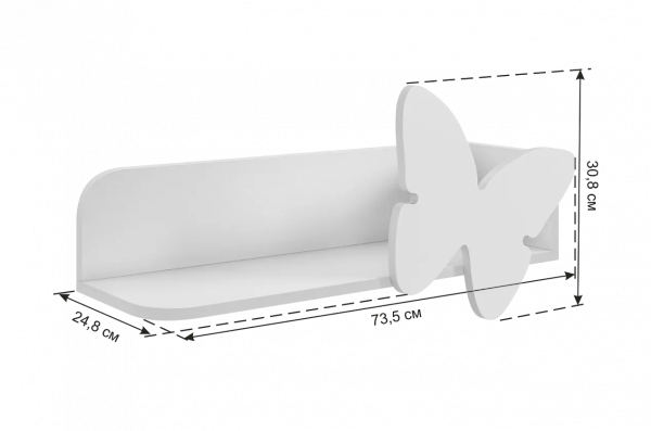 Полка навесная "Бабочка" - идеальный выбор для тех, кто стремится придать своему интерьеру особую нотку изящества и романтики. Эта навесная полка размером 735х250х308 мм будет отличной добавкой к детской комнате, особенно если это детская "Зефир".