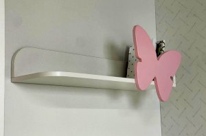 Изготовлена полка из качественных материалов: корпус из лдсп белого дерева придаст интерьеру легкость и свежесть, а декоративный элемент в виде бабочки из мдф розового цвета, эмаль внесет нотку игривости и нежности.
