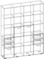 Применение задней стенки из ЛДСП (в ячейках с ящиками и фасадами) позволяет использовать данный стеллаж для зонирования пространства (чтобы предотвратить опрокидывание, необходимо обеспечить крепление стеллажа к стене).