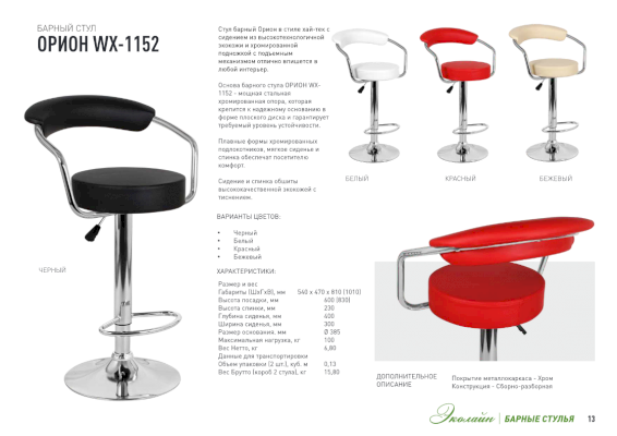 Барный стул Орион (Эколайн) - за 8 257 руб. в Химках. Купите на сайте himki.onlinemarketmebeli.ru или по телефону 8(800)505-30-63 уже сегодня! Уточнить наличие, комплектацию, актуальную цену можно бесплатно у менеджера ежедневно. Закажите Барный стул Орион (Эколайн) до конца акции! Доступна покупка в кредит, рассрочку. Доставим со склада или на заказ.