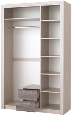 Возможность установки дополнительных опций в предметы хранения: шкаф и пенал можно дооборудовать полками и перегородкой с полками.