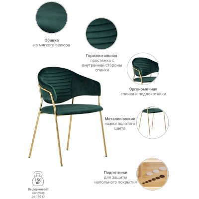Мягкие спинка и сиденье, оригинальный каркас и опоры с декоративным эффектом технологии золочения хромированных деталей.