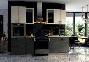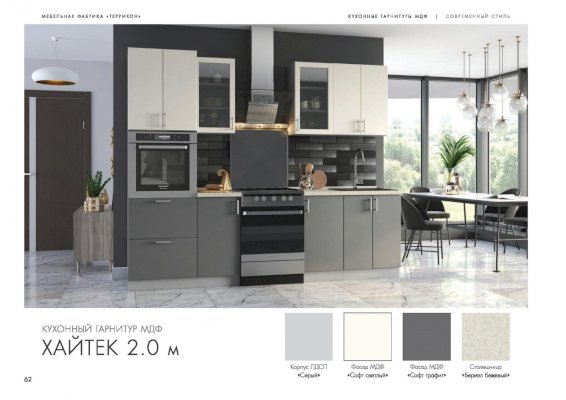 Кухня Хайтек изговаливается также в цветах серый/лайм глянец; серый/крем брюле глянец; серый/мокко глянец; серый/лайм глянец; серый/софт светлый. Модули в этих цветовых решениях вы сможете найти в нашем интернет-магазине.