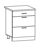 Глубина верхних шкафов указана без учета фасада, высота столов указана без учета столешницы