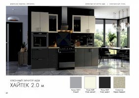 Специально для поклонников ультрасовременных интерьеров создан кухонный гарнитур «Хайтек». Мебель наделена всеми характеристиками этого стиля: стремительными линиями, монохромными цветами, глянцевыми поверхностями, минималисткой фурнитурой. Декоративные элементы не используются. Благодаря этим особенностям дизайна комплект не загромождает пространство.