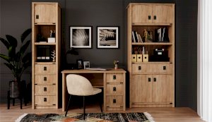 Шкаф - универсальное решение для хранения вещей. Две открытые полки подходят для книг и учебников, декоративных предметов. Декоративные накладки и профиль из МДФ по вертикальным краям закрывают острые края корпуса и придают шкафу более эффектный и надежной вид. Стилизованные металлические ручки MARINE бронзового цвета и декоративные элементы в тон – это изюминка шкафа Валенсия. Идеально компонуется со всеми модулями системы Валенсия.
