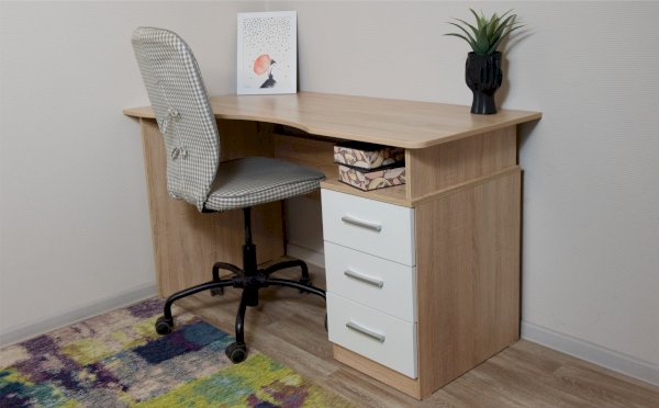 Стол письменный – удобное рабочее место для студента, школьника, отличное решение для кабинета с интерьером в скандинавском стиле. На широкой столешнице легко поместится монитор, клавиатура и документы, а в ящиках поместятся все письменные принадлежности. В столах системы Гарвард мягкие, удобные для опирающихся рук края, с кромкой в 2мм, а также, скруглённые углы столешницы. Корпус выполнен в теплом древесном цвете светлого дуба с приятной на ощупь фактурой, фасады - белые матовые. Нейтральные оттенки мебели позволяют легко вписаться уже в готовый интерьер.
