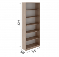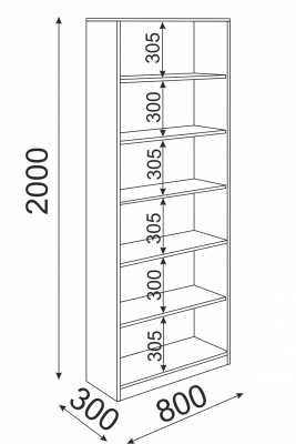 • Стеллаж с пятью открытыми полками, из которых: три - съемные, две - жесткого крепления (через одну).