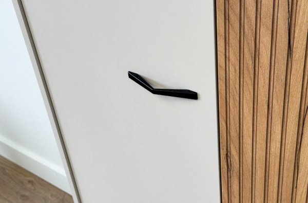 Особый шарм шкафу придает декоративный элемент цвета дуб крафт золотой на одной из дверей, добавляя нотку роскоши и уникальности.