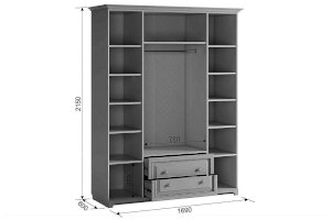 Нет ничего лучше, чем сочетание красоты и практичности. 4-створчатый шкаф «Белла» тому доказательство. Фасады шкафа выполнены в нежном оттенке джелато, дверцы украшены фрезеровкой, а ручки – декоративными кистями. Центральный отсек шкафа оснащен круглой штангой для одежды, а боковые – полками. Выдвижные ящики прекрасно подойдут для хранения вещей.