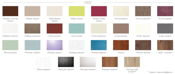 Материал: корпус ЛДСП, фасады МДФ Пленка ПВХ