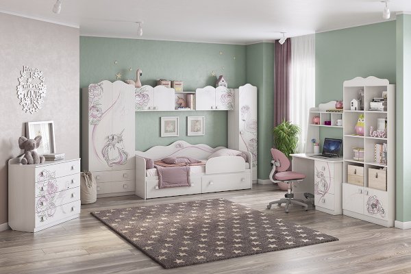Стильный и модный шкаф детской «Фэнтези» - обрадует каждого ребенка. Длинная штанга для одежды и 2-а больших выдвижных ящика для белья - отличное решение для детской. Необычный принтерный рисунок на фасадах выдержан в общем стилистическом решении. Рисунок устойчив к истиранию и ультрафиолету.