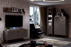Интерьер современной гостиной должен быть не только красивым, но и функциональным. Для открытого хранения и расстановки предметов декора вы можете купить настенную навесную полку. Полка в мягком сером цвете мокко прекрасно впишется в интерьер в современном стиле.