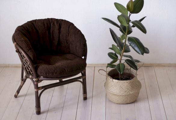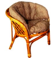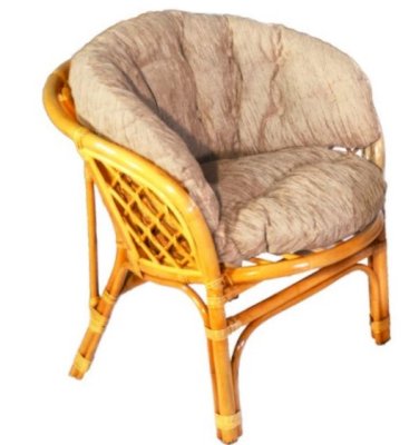 Удобное кресло из натурального ротанга с мягкой подушкой.