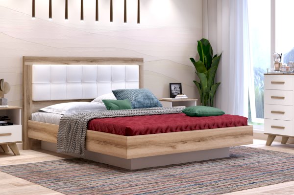 Широкий ассортимент мебели от производителя МФ «Кураж» включает большой выбор различных кроватей. Если вам необходимо купить двуспальную кровать обратите внимание на кровать 5 с подъёмным основанием «Вега Скандинавия». Кровать обладает рядом преимуществ: